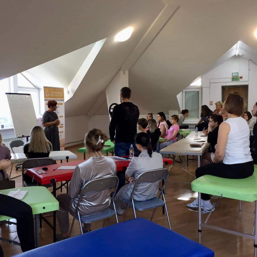 мобильная стойка с телевизором 65 дюймов, проектор, флип-чарт, термопот, вода, чай, одноразовые стаканчики, бумажные полотенца, складные столы, стулья, коврики, массажный стол, пледы), возможно доукомплектование по запросу.